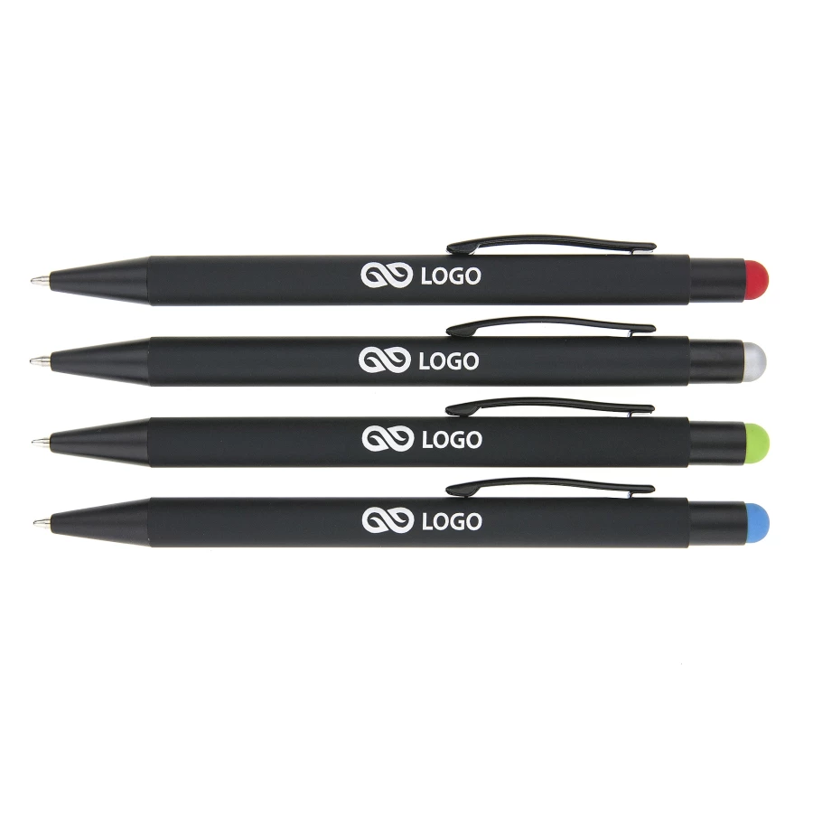 Der Kugelschreiber „Point“ aus Detroit ist ein einzigartiger Werbeartikel mit einer Hülle aus schwarzem Aluminium, der durch sein modernes und minimalistisches Design besticht. Ein farbiger Druckknopf ist das einzige dekorative Element. Mit der Laserschneidtechnik kann der Stift individuell mit einem Logo, einem Werbeslogan oder einer Grafik Ihrer Wahl versehen werden, was ihn zu einem effektiven Werbemittel für Ihr Unternehmen macht. Der metallische Werbekugelschreiber „Point“ überzeugt nicht nur durch sein interessantes Design, sondern auch durch seine hohe Benutzerfreundlichkeit.