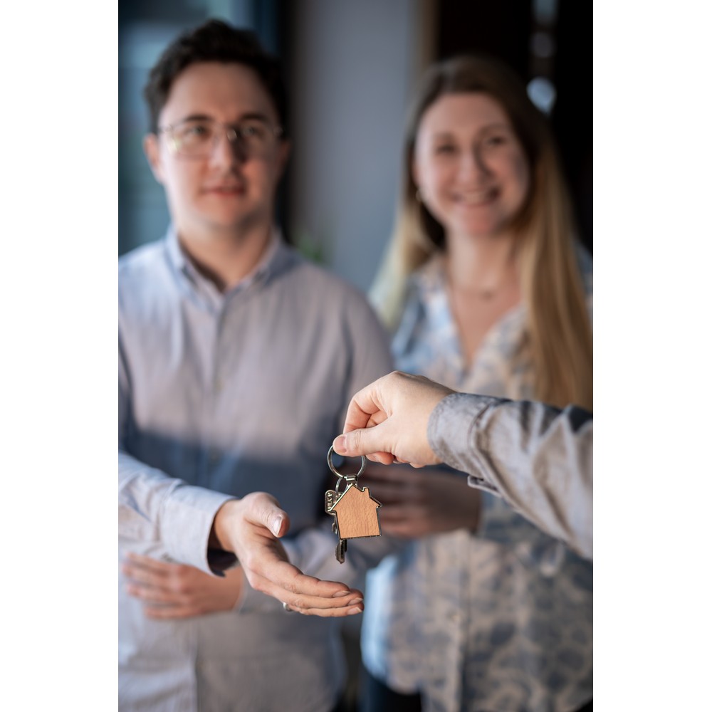 Schlüsselanhänger Haus aus Holz mit individuellem Branding